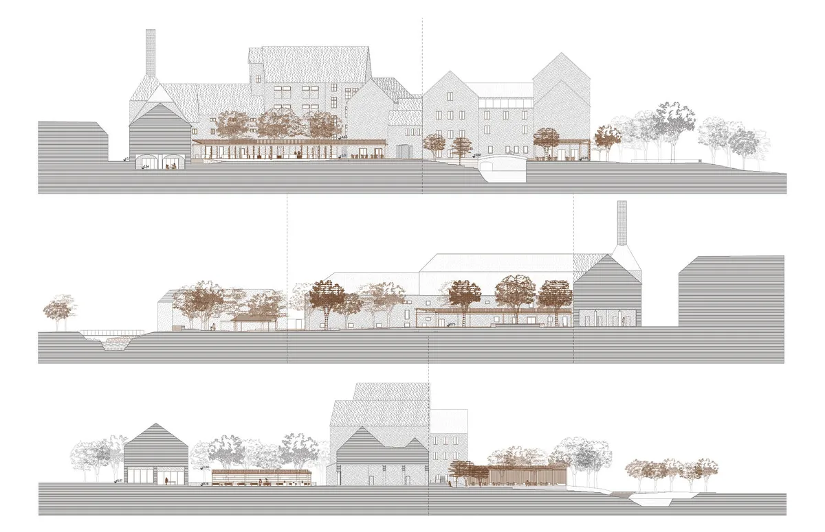 Az építészeti megoldás nem a meglévő épületek jelentős átalakítását, lebontását vagy hozzáépítését jelenti, hanem minimális új beavatkozásokat, amelyek egy kortárs réteget hoznak létre a helyszínen.