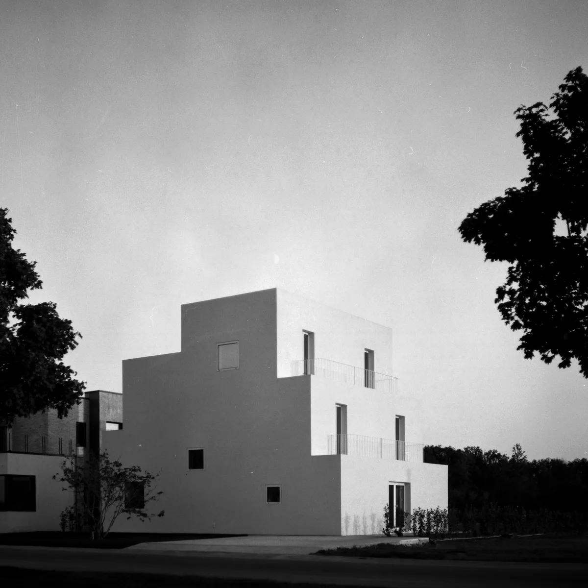 Proiectul de arhitectură realizat de biroul alt.corp, reușește parcă să reinterpreteze acoperirea unei case, undeva între silueta arhetipală grosieră de șarpantă și succesiunea de terase ceva mai actuale. Documentarul fotografic încearcă să reprezinte în consens forma atipică a proiectului, abordând contraste diferite, estomparea limitei între cer și casă sau contextualizarea atipică. Și face asta utilizând la rândul lui tehnica arhetipală de fotografie pe film format mediu care ajută să redea mai potrivit aceste contraste.