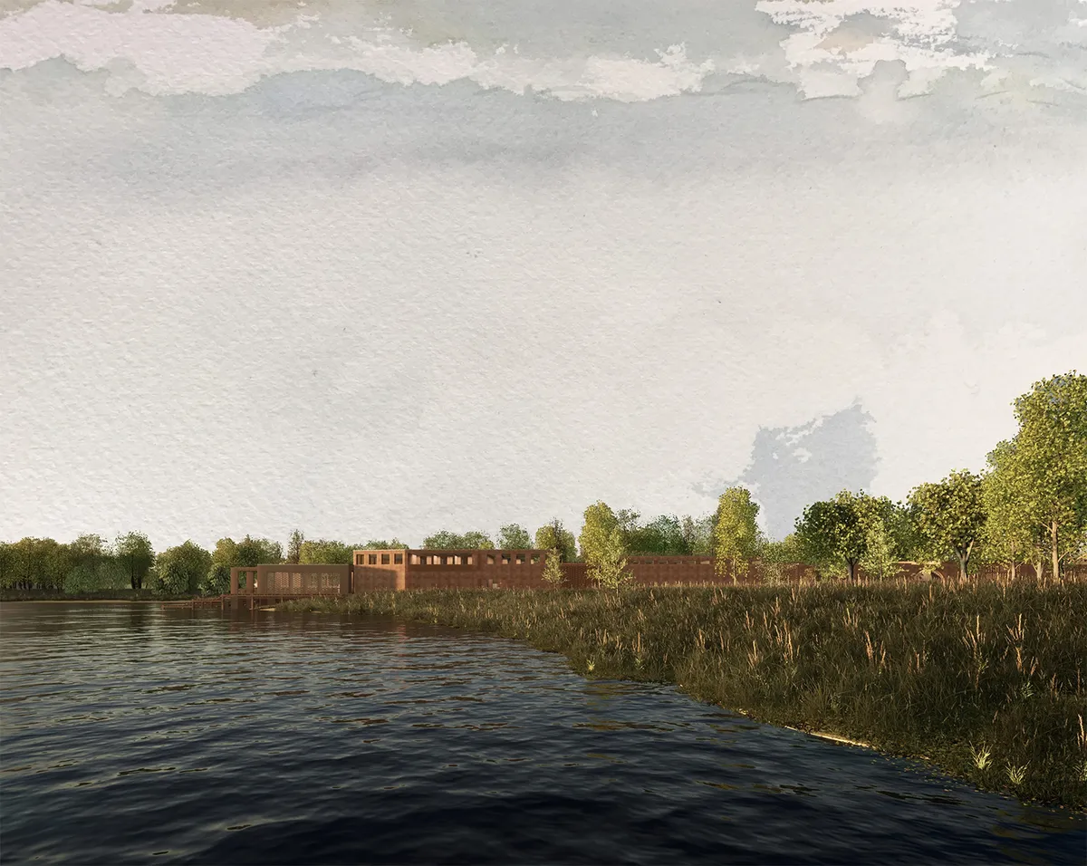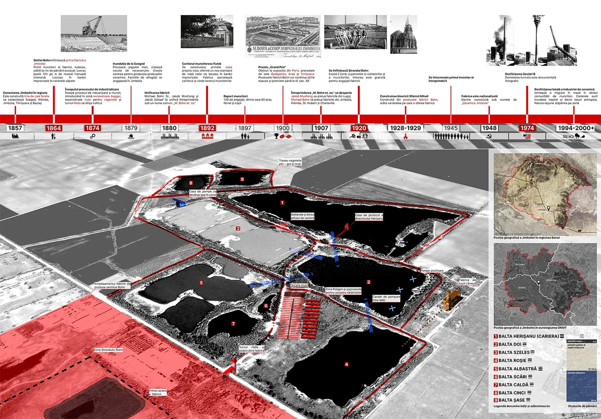 Zona bălților din Jimbolia reprezintă un peisaj cultural complex, atât prin istoria importantă a industriei sale de ceramică, ce a conturat identitatea comunității locale, cât și prin biodiversitatea peisajului natural-antropic, format în urma declinului industrial. În lipsa oricărei urme materiale care să ateste povestea industrială a locului, regăsită astăzi doar în memoria colectivă a comunității care a trăit-o, aceasta va dispărea odată cu trecerea generațiilor. Proiectul a avut ca miză adresarea acestei istorii intangibile. Proiectul a pornit de la conceperea unei sistematizări strategice cuprinzătoare care să creeze, la nivel macro, o imagine coerentă și unitară. Această sistematizare a constat în implementarea unui masterplan al zonei, ce urmărește integrarea unei serii de inserții în peisaj într-un un grid raportat la rețeaua locală și teritorială. Această rețea, alcătuită din puncte, articulații în peisaj, dialoghează cu piesa centrală - ansamblul cultural, transmițând ideea unui muzeu ce se extinde pe întregul peisaj. În cel mai important loc din masterplan-ul zonei bălților, ansamblul cultural apare drept un gest liniar ce se materializează în imaginea unui zid de cărămidă, care devine, totodată, o arhivă de materiale și însemne, o poartă care primește publicul în zona bălților, un fundal pentru vegetația pe care o traversează și un mijloc de a primi mișcare în interior și deasupra sa. Linia este în sine și o casă în care sunt găzduite funcțiunile ansamblului între cele două ziduri, creând astfel o succesiune de spații și curți interioare: Centrul de Artă & Cercetare spre S-V, iar spre N-E Muzeul. Efortul sintezei dintre funcție, gest artistic și discurs intelectual a ghidat proiectul până în etapa lui finală. Nu întâmplător numele acestuia este și ”Between the Lines”. Proiectul face apel tocmai la o astfel de lectură, adâncă și sofisticată, printre linii, folosind arhitectura în sens aproape literar. Arhitectura este configurata nu atât pentru a adăposti cât pentru a crea misanscena unei experiențe spațiale atent regizate. Linia este în fapt o frază și o poveste. Arhitectura este deopotrivă regie și scenografie. De-a lungul ei spațiul poate fi descris în acte. Zidul ca intrigă. Materialul ca leitmotiv. Spațiul ca figură de stil. Forma ca metaforă. Traseul ca fir epic spre un deznodământ sau alatul.