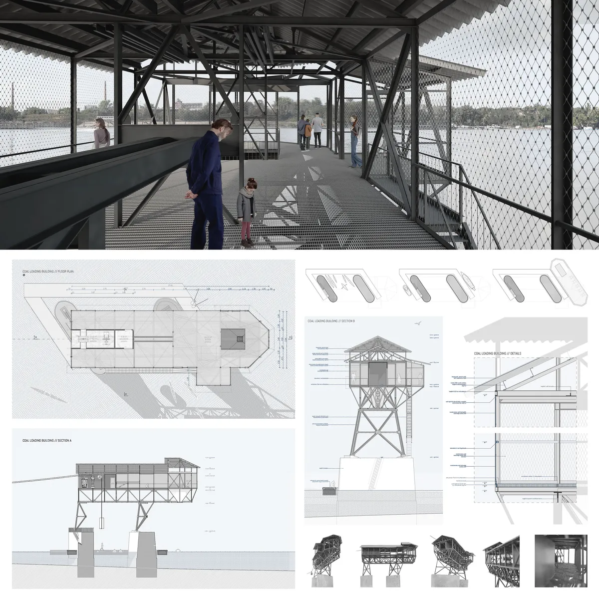 Diplomamunkám célja az Esztergomi Szénrakodó újrahasznosítása és megmentése. Az épület 1927 óta áll a Duna vízében, Esztergom külvárosában, a Nyáros és Prímás sziget ölelésében. A szénrakodó egykor fontos szerepet játszott a dorogi szénbányából érkező szén uszályokra való átrakodásában, de az 1960-as évek közepén bezárt, és azóta elhagyatottan áll.