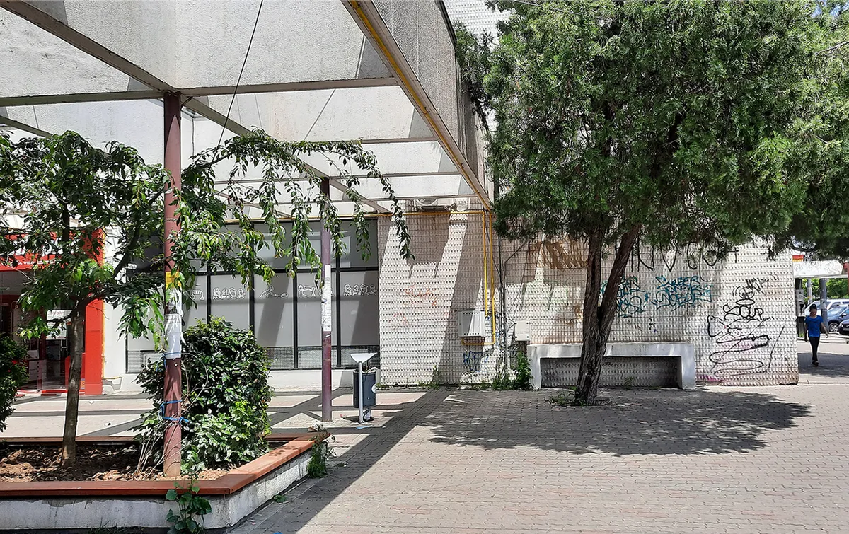 Proiectat de arh. Daniel Guj, complexul comercial a fost construit între 1964 și 1971, împreună cu întregul cartierul din jur. Este un reper pentru publicul local ca și punct comercial recent cu arhitectură deosebită, de inspirație socialist modernistă. Ce i s-a întîmplat clădirii este că s-a schimbat sistemul economic din comunism în capitalism. Complexul a fost la un moment dat vîndut / concesionat de către Stat unui antreprenor. Acesta l-a împărțit în spații mici și mai mici pentru a închiria către cît mai mult public. Interesul antreprenorului este minimal pentru bunăstarea clădirii, asta pentru că cei care închiriază vin – și pleacă - cu tot. De la signalistica de pe fațadă, gresia de pe jos care acoperă mozaicul vechi, gips cartonul care acoperă igrasia la aparatul de aer condiționat. Așa acest patrimoniu valoros moare pentru că nu se poate interveni unitar. Singura salvare este ca următorul proprietar să aibă mai mult interes pentru salvarea clădirii.