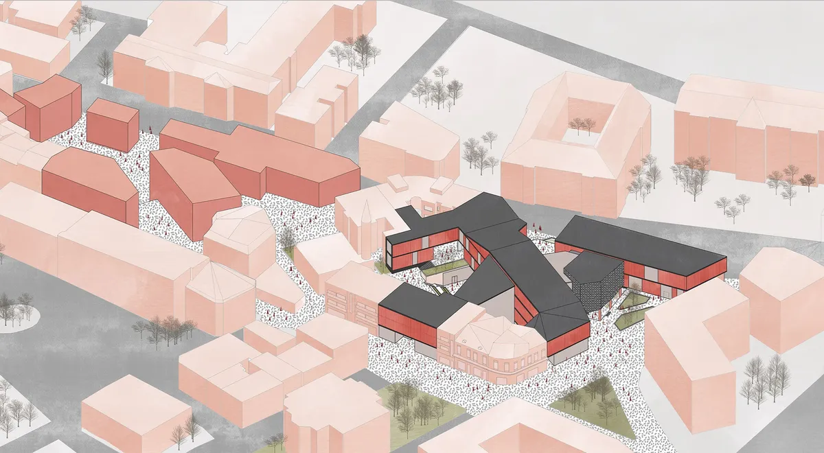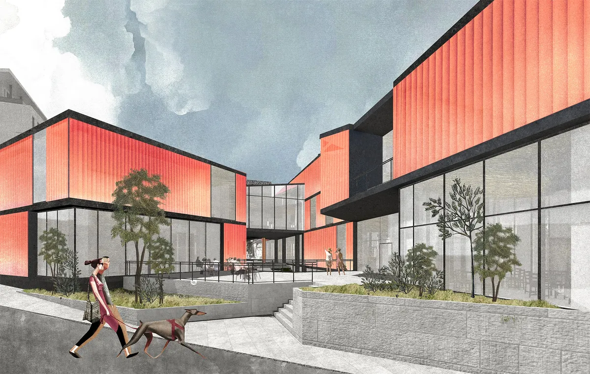 Proiectul presupune realizarea unui centru de artă digitală care să cuprindă atât o componentă expozițională, cât și una educativă, devenind un cumul de spații destinate proiecțiilor și educației. De asemenea, proiectul are ca scop completarea țesutului urban și întregirea parcursului pietonal la intrarea în Centrul Vechi al Constanței. Conceptul volumetric se ghidează după trei direcții de proiectare, prima fiind crearea unor curți scufundate pentru a pune în valoare Geamia Hunchiar. Curțile publice se află la nivelul subsolului, dar sunt în legătură directă cu spațiul public de la parter prin intermediul gradenelor, acționând ca amfiteatre pentru expoziții sau spectacole în aer liber. Alte direcții sunt completarea frontului pentru a concentra activitățile către aceste curți și spargerea volumelor și fronturilor la nivelul parterului pentru a păstra continuitatea circulațiilor pietonale activate de funcțiuni publice. Din punct de vedere funcțional, proiectul este împărțit în zona expozițională, zona de educație și cea de comerț. Bara centrală este caracterizată de un atrium ce acționează ca zonă de expoziție temporară deschisă publicului larg, cu legături către celelalte volume ce înglobează zone de coworking, workshop, conferințe, expoziții, dar și sala de spectacole, care, împreună cu foyerul său, acoperă accesul principal în clădire și accesul către una dintre curțile scufundate. Vila Calambotos este inclusă în ansamblu și cuprinde spații de locuire temporară pentru artiști. Parcursul expozițional pornește de la subsol, în relație directă cu cele două curți, și continuă până la etajul 1, incluzând expoziții de picturi digitale, proiecții, VR, video și animații. Expoziția pentru workshop funcționează separat și are o legătură verticală cu sălile de workshop. Pentru fațade, întreg ansamblul folosește fațade double skin. Sala de spectacole are un sistem de fațadă media, iar restul ansamblului are fațade U-glass cu textură translucidă și colorată. Astfel, ansamblul aduce o noutate în lumea artelor recente prin înglobarea atât a expozițiilor permanente de artă digitală, cât și a componentei educative. În același timp, completează spațiul public și păstrează continuitatea acestuia prin legătura cu bulevardul Tomis și reperele importante din parcursul pietonal prin centrul vechi al Constanței, astfel încât Digital Art House devine o „poartă” de acces către Peninsulă.