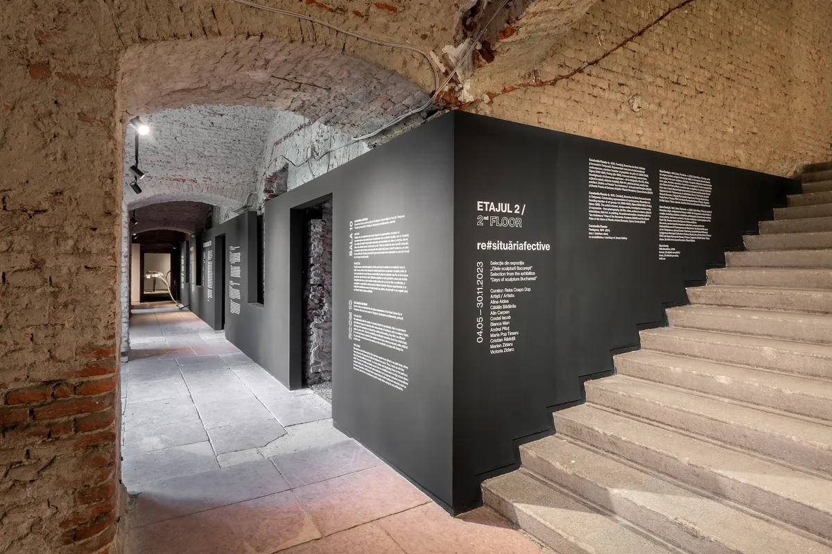 Pereții interiori ai cursivelor au fost dublate cu un perete nou, decupat în dreptul ușilor si geamurilor, care marchează spațiile expoziționale și devine interfața fiecărei expoziții, fiind suportul fizic al conceptelor curatoriale, biografiilor artiștilor și denumirilor tuturor spațiilor.