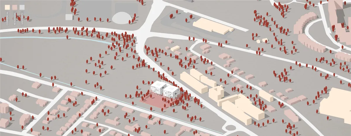 Kutatni kezdtem az állatvilág példáira alapuló építészeti eszközök után, így bukkantam rá a szimbiózis, együttélés és a parazita építészetre. Végül mindhárom eszközkészletből merítve alkottam meg a végleges formát: hozzáadás, kivonás és betolás technikáival. Hozzáadtam, hogy megteremtsem a két tömeg kapcsolatát, kivontam a természetes fény biztosítása érdekében és betoltam egységeket a leendő lakók számára. Az egyetem közönségére alapozva lakó funkció került elhelyezésre.