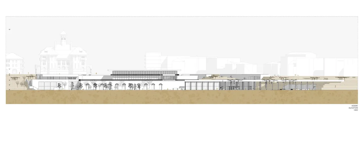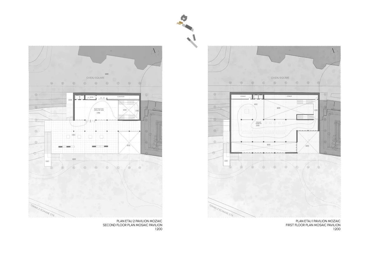Galeria Nouă are scopul de a reactiva taluzul vestic al Peninsulei și de a crește interesul pentru istorie și arheologie și astfel vitalitatea culturală a Constanței. Proiectul extinde rețeaua muzeală din centru și întregește parcursul pietonal. Ansamblul se compune din 3 pavilioane, două dezvoltate în faleză pentru a consolida malul și a se camufla în peisajul natural și un al treilea volum în prelungirea vestigiilor Termelor Romane care le protejează și le pune în valoare. Pavilionul Mozaic situat lângă Edificiul Roman cu Mozaic găzduiește expoziția permanentă de tezaur, Pavilionul Ovidiu include sălile pentru expoziții temporare, sala de conferințe și atelierele pentru vizitatori și Pavilionul Terme conține expoziția permanentă dedicată Termelor Romane și obiectelor descoperite în timpul construcției. Materialitatea proiectului – beton aparent pigmentat, metal și sticlă – reflectă materialele și cromatica regăsite în clădirile învecinate, precum Edificiul Roman cu Mozaic. Acestea formează o poezie a materialității, fiind juxtapuse, tectonice, transparente. Pavilioanele sunt conectate cu exteriorul prin intermediul unor spații intermediare, spații liminale, porticuri, patio-uri sau buzunare urbane care facilitează tranziția de la spațiul interior la cel exterior. Alegerea acestei teme este motivată de dorința de a sincroniza muzeele Constanței cu standardele internaționale și de a valorifica potențialul cultural și turistic al orașului.