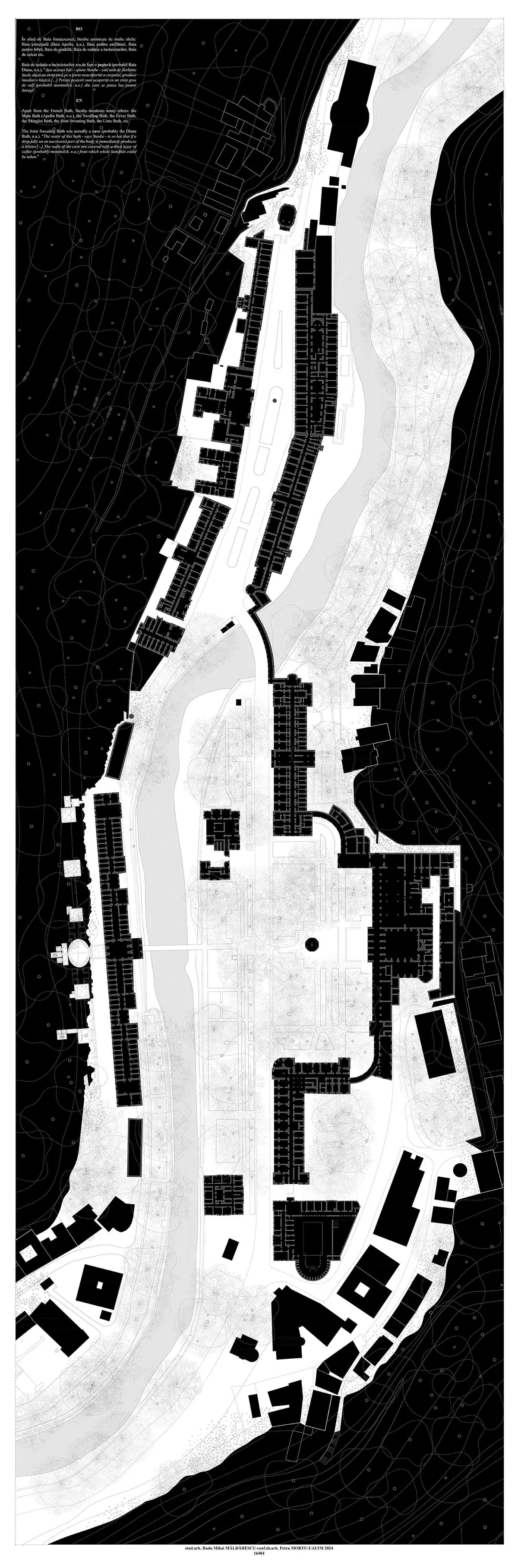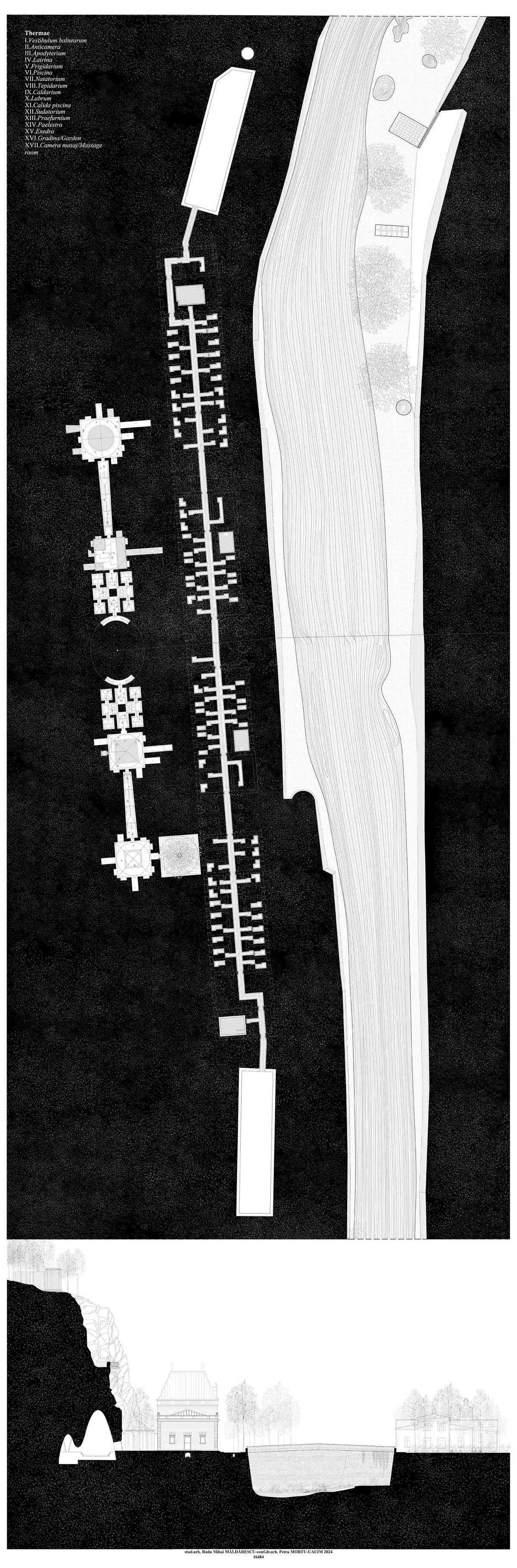 Stațiunile balneare autohtone se confruntă cu o imagine învechită a peisajului lor cultural și simultan cu inablitatea fondului construit de a mai relaționa cu împrejurimile sale, astfel aceste neajunsuri formează subiectul proiectului de diplomă, parcurs ce urmărește remedierea relațiilor pierdute ale nucleului istoric și propunerea unui scenariu de regenerare a imaginii reprezentative a stațiunii Băilor Herculane. Clădirea fostelor băi imperiale este subiectul acestui proiect, motiv pentru care s-a urmărit ca aria de intervenție să fie reprezentată de interstițiul rezultat dintre obiect și peisajul său, mai exact versantul stâncos pe care se profilează silueta sa. Soluția lucrează prin două procedee distincte și anume cel de substracție și cel de adiție, astfel încât raportul dintre imaginea istorică a băilor și cea a intervenției să devină complementare și să păstreze măsură locului. Spațiile interioare urmează raționamentele structurale impuse de către mediul în care este realizată intervenția, motiv pentru care intradosurile încăperilor capătă rezolvări structurale distincte, însă în concordanță cu funcțiunea pe care o acomodează. Obiectivul intervenției este acela de a prezenta arhitectura contemporană ca parte integrată în peisaj și de sensibilizare în privința mizei arhitecturii ce nu poate crea o unitate vizuală fără să ia în considerare particularitățile mediului în care se așează.