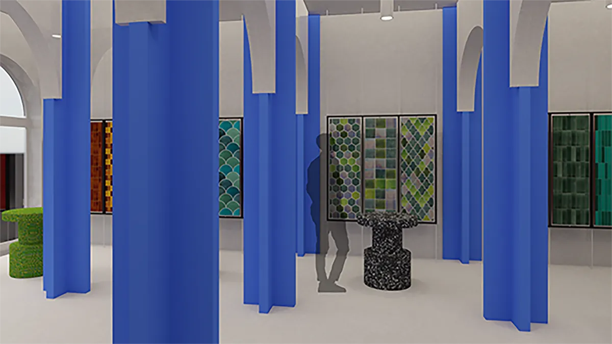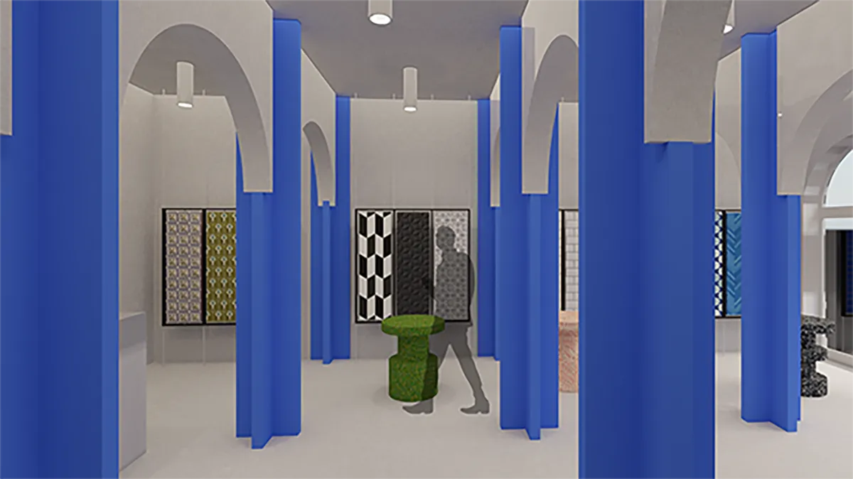 Prikazanim idejnim rešenjem prizemna zona objekta se zadržava u postojećem stanju u stilu akademizma sa secesijskim tendencijama, a sa novom namenom: izložbeni salon žolnai keramike. Prizemlje ima jedan centralni ulaz, čime je prostor objedinjen u jedan lokal. Idejno rešenje enterijera u prizemlju prati raspored fasade, što znači da su prostorne zone raspoređenje po dužini objekta. Izložbenu zonu objekta čine zona za prijem sa pultom, dok su ostale zone određene za posetioce gde mogu da pregledaju kataloge i uzorke pločica. U zadnjem delu objekta smeštene su ostava i toalet.