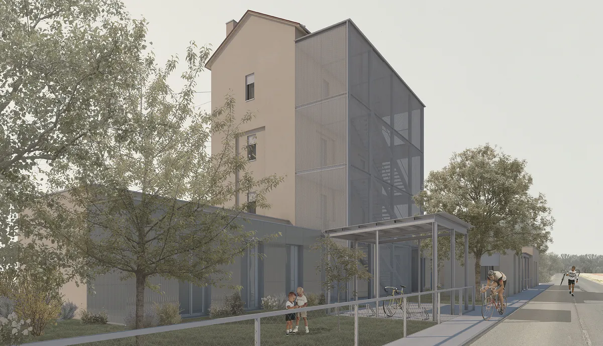 A komáromi vasútállomás nyugati végében áll egy elhagyatott, magas ház. Az épület egykor vízházként funkcionált, a Komáromon áthaladó vonatszerelvények gőzmozdonyait látta el a gőzvontatásban kulcsfontosságú „üzemanyaggal”, vízzel. Sok éve egyetlen gőzös sem jár erre, így a vízház kihasználatlanul magasodik az őt körülvevő földszintes vasútállomási épületek fölé. Eközben a torony másik oldalán egy egyre népszerűbb kerékpárút halad el a vízház és a Duna partja között. Ez a kerékpárút adta a lehetőséget, hogy a több évtizede kihasználatlan vízházban egy kerékpáros turistákat kiszolgáló hostelt alakítsak ki.