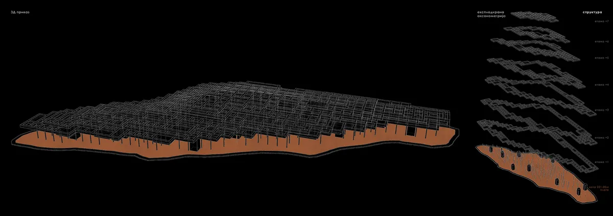 Пројектом “кота 221” предвиђена је изградња Над-универзитета на Звездарској шуми. Локација је значајна због свог стратешког положаја или све присутности у градским визурама. Кроз свој положај и појавност овај пројекат треба да покрене одређене друштвене промене, односно да афирмише младе образоване људе. “Кота 221” је заправо платформа формирана засецањем терена на коти 221 метра. Она је заправо веза између Звездарске шуме, приступних комуникација и самог објекта и као таква представља место сусрета, догађаја. Обликовање објекта проистекло је из постојећег облика терена. Форма је сада геометризована. Нова природност се постиже и “шумом” стубова и стабала који прате карактеристике контекста.