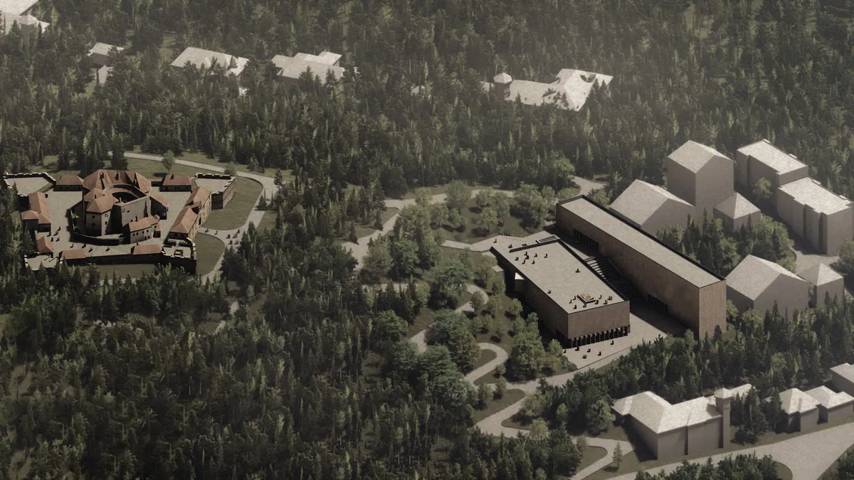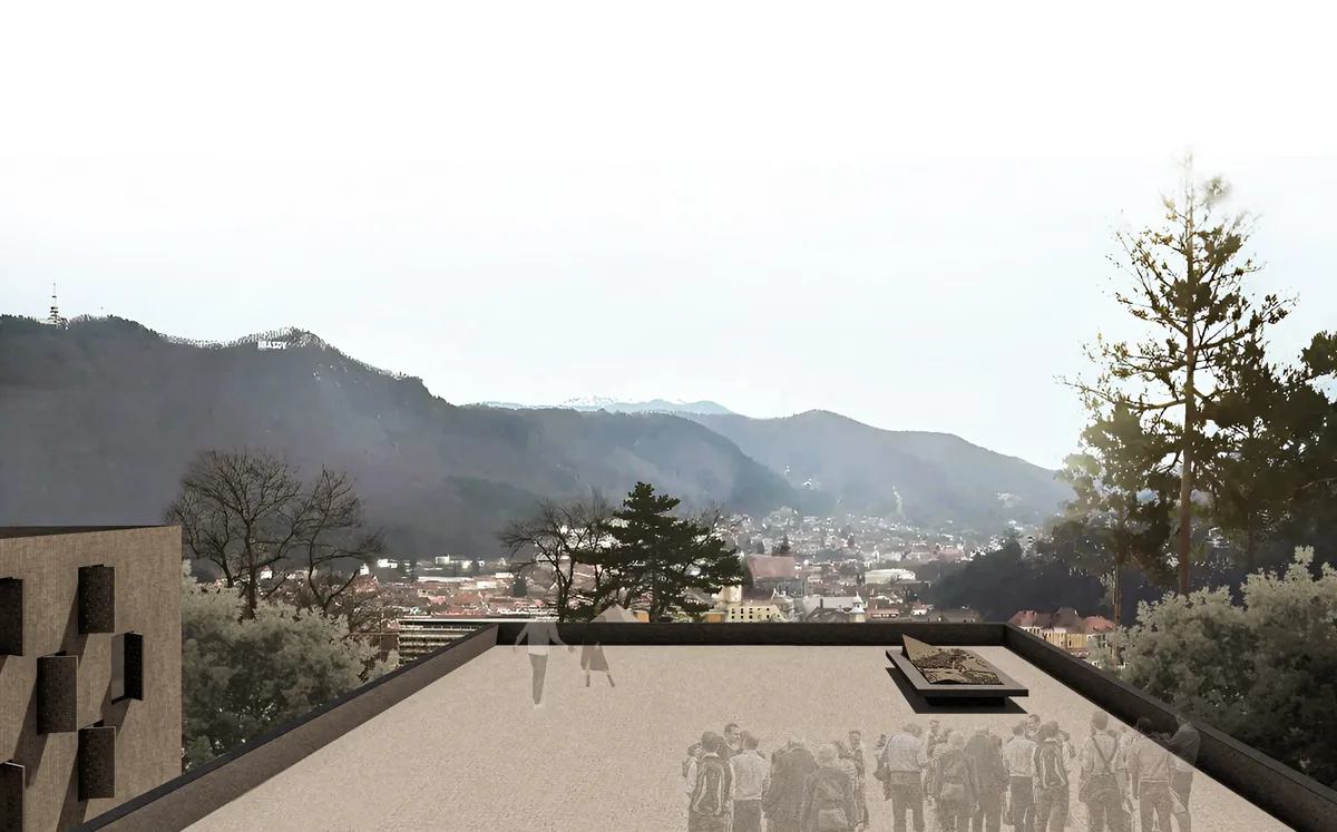 Propus în inima medievală a fostelor cetăți germane din România, conceptul este poziționat în proximitatea orașului istoric KRONSTADT, pentru a răspunde nevoii esențiale a existenței unui centru de conservare al valorilor patrimoniale ale comunității. Din punctul de vedere al discursului arhitectural, propunerea urmărește parcurgerea unui spațiu care ne poartă prin vasta istorie și însemnătate a locului. Am decis să urmăresc un limbaj care să evidențieze caracterul comunității germane, sugerând durabilitate, stabilitate și imaginea lucrului bine făcut. O formulă prin care clădirea să-și păstreze aspectul monolitic și caracterul protector adecvat într-o astfel de abordare. Astfel, am metaforizat clădirea propriu-zisă în memorie, păstrare și siguranță. Intenția a fost de a transmite mesajul, dar fără ca prezența ansamblului să devină invazivă. Am căutat să abordez o imagine construită din linii clare, care să respecte cerințele conceptuale și, mai mult de atât, cerințele reale ale unei intervenții de genul acesta: siguranță, fermitate, durabilitate. Astfel, prin parcursul creat și prin coerența spațiilor, dar și alături de piesele de mobilier propuse, exponatul este pus în centrul atenției și este redat comunității într-un scenariu ce accentuează emoția. Limitarea vizuală către Biserica Neagră și deschiderea vizuală unică spre Cetatea de pe Straja reprezintă abordări ce urmăresc valorificarea maximă a patrimoniului cultural al comunității, transformând aceste două repere arhitecturale în exponate esențiale ale parcursului creat. Modul de abordare, atât la nivelul spațiilor interioare, cât și la nivelul studiului luminii este unul indirect și se concretizează prin evidențierea mesajului regăsit la nivel volumetric și conceptual. Regia luminii este un element perceptibil pe care am dorit să-l scot în evidență prin posibilitatea de a o controla la nivel maxim. Intenția de a închide volumul vine din dorința de a oferi un spațiu ermetic în care exponatul să fie pus în valoare la potențial maxim prin regia spațiului. Posibilitatea închiderii complete creează o dualitate simbolică, ce oferă un statut protector pentru patrimoniul cultural al sașilor, protejat de zidurile tectonice ce fac trimitere la simbolistica cetății. De asemenea, prin redeschiderea volumului și a perspectivelor către reperele de patrimoniu, spațiul este redat simbolic comunității și transmite o invitație clară spre redescoperirea valorilor culturale ale sașilor.