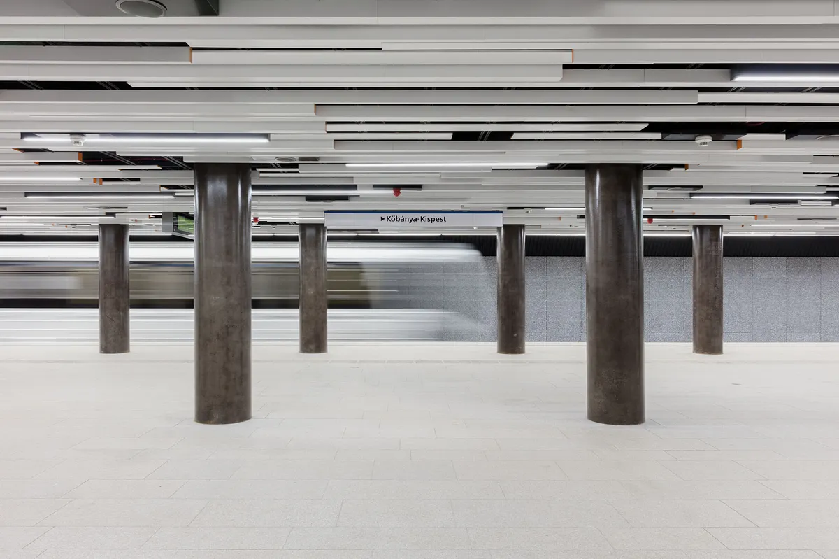 A visszaépítés már nem opció, nem létezik már a technológia és az akarat sem hozzá. A lebontás folyamatának logikáját követve egy másik út sejlik fel. A lamellás álmennyezeteket, fal és oszlopburkolatokat eltávolítva megmutatkozik a metró igazi arca, az eddig csak alagutakban, üzemi terekben látható igazi szerkezetek, az alagutak, a tübingek, az acéllemez szigetelések, a shotcrete, a Mannesmann ágyúcső. Tulajdonképpen készen vagyunk. Ami visszakerül, nem takar, csak kiemeli a szerkezetet, utalgat, új dinamikát hoz. Semmi nem ér össze semmivel, minden lebeg, elfut, megáll, gyorsul, lassul, mozog.
