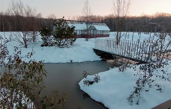 Locul, un fost lan de porumb traversat de căprioare și înconjurat de pădurea Snagov, avea să dicteze amplasarea pavilioanelor în cotloanele create de pădure, astfel încât, de pe drum, aproape să nu se vadă: Orangeria (sera principală), un corp minimal de cazare și o seră secundară.