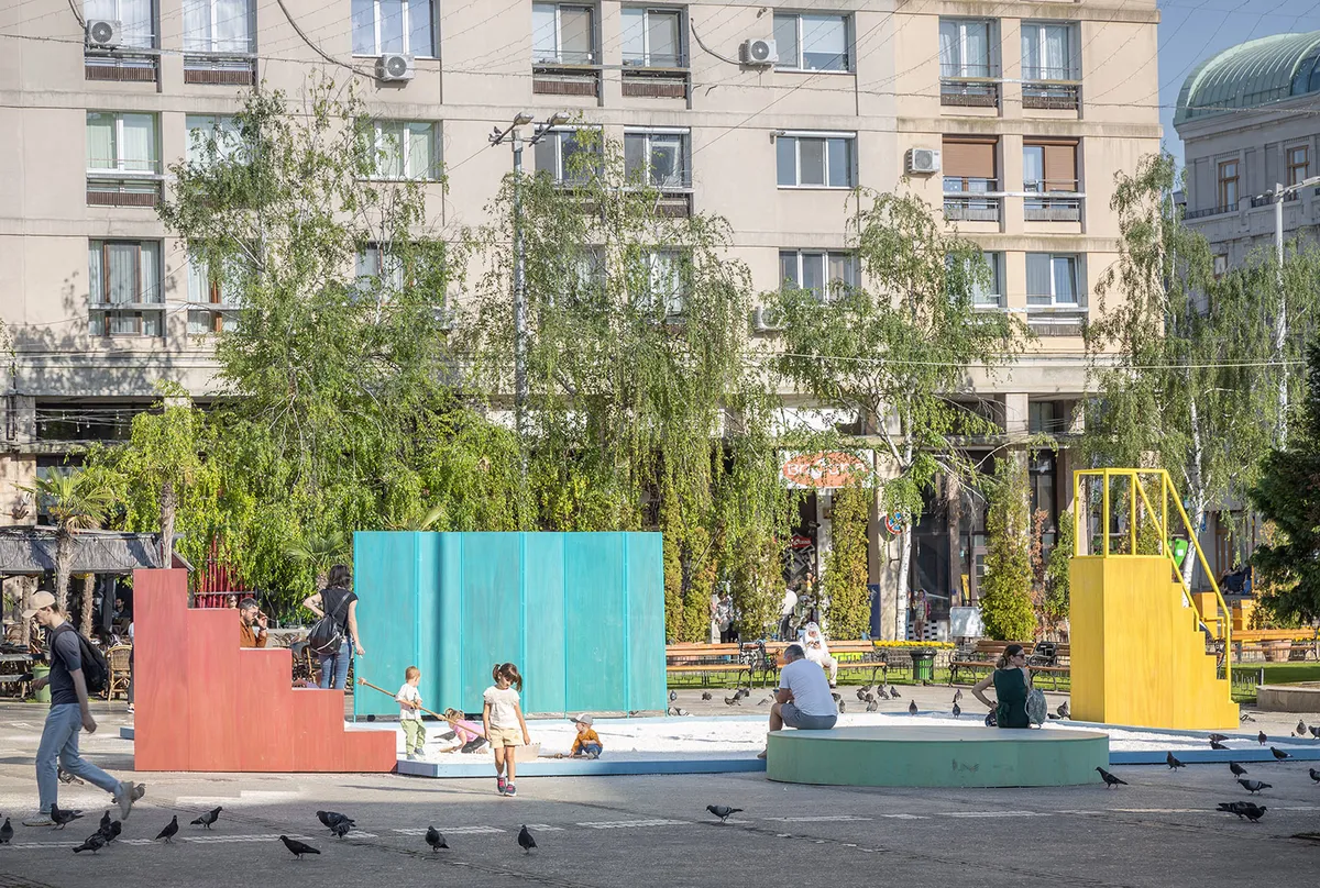 În cadrul bienalei de arhitectură Common Imaginary a festivalului Romanian Creative Week de la Iași, arhitecții Studio Ossidiana au imaginat o tablă de desen din pietriș – o scenă publică, deschisă tuturor, unde poți compune, șterge, desena și redesena basoreliefuri efemere pe stratul mineral. Drawing Theater e un teatru deschis, un prilej de observare și o invitație la interacțiune cu scena din pietriș, sculptând pe suprafața minerală desene delicate cu ajutorul instrumentelor. Gesturile sunt puternic inspirate de context: basoreliefurile din detaliile Bisericii „Trei Ierarhi”, instrumentele de desen din practicile tradiționale agrare, dinamica spațiului din felul în care Piața Unirii este traversată și folosită. Ca un ciclu complet, după ce festivalul s-a încheiat, pavilionul a fost donat Asociației „Casa Bună” și va fi relocat în curtea viitoarei grădinițe dedicate copiilor din comunitățile vulnerabile.