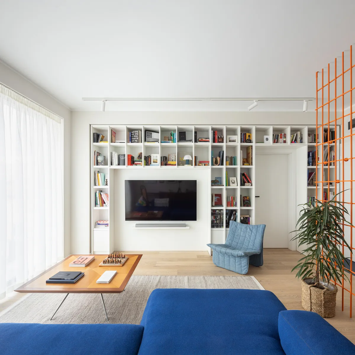 Intr-o schema existenta, puternic orientata catre strada si articulata functional se introduc parametrii unei locuiri dinamice. Intentia generala continua premisa data intr-un colaj de obiecte nascute, propuse si construite. Astfel, reiese intimul, stratificat in momente de locuire. Spatiul central al casei, livingul, este un spatiu viu ce inglobeaza accesuil, diningul, livingul si o zona mica de lucru. Cheia proiectului a stat in calibrarea acestui spatiu, prin propunerea unui limbaj format din transparenta, limita, obiect si spatiu. Ca un semn de punctuatie ce poate schimba intregul sens al unei propozitii, paravanul de intrare impreuna cu biblioteca-perete orienteaza toata circulatia casei – determina o zona de intrare, orientata catre strada si sustinuta de o banca executata pentru acest proiect. Capatul traseaza articularea diningului fata de bucatarie si in acest fel se stabileste o limita intre cateva activitati dinamice si living. Orientarea canapelei musai catre deschiderea mare de vitraj; in acest fel se autodetermina o zona de intimidate orientata catre exterior. Bucataria are o rezolvare simpla, dar urmeaza acelasi limbaj al juxtapunerii, cu un colaj de scara si finisaj –corp masiv si lucios vs spatiu de lucru, frasin masiv finisat cu ulei. Pentru crearea unei pauze in acest front liniar, un breakfast bar articuleaza relatia dintre scarile mobilierului. Revenind in spatiul de acces, biblioteca-perete joaca un rol dublu – functional si sensorial, facand trecerea intre zona de zi si zona de noapte. Continuarea prin reflexia depozitarii continua povestea si desfacere spatiile urmatoare –dormitorul si baia. Fiecare din aceste spatii sunt mobilate intr-o masura echilibrata, finisate neutru avant elemente-colaj ce personalizeaza cotidianul. “totul” reflecta o sumedenie de decizii, microdecizii ce se transpun in centimteri,texturi,orientari, alinieri, articulari, deschideri, inchideri care construiesc fiecare clipa a locuirii.