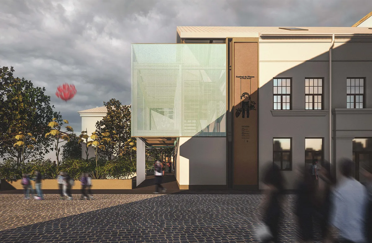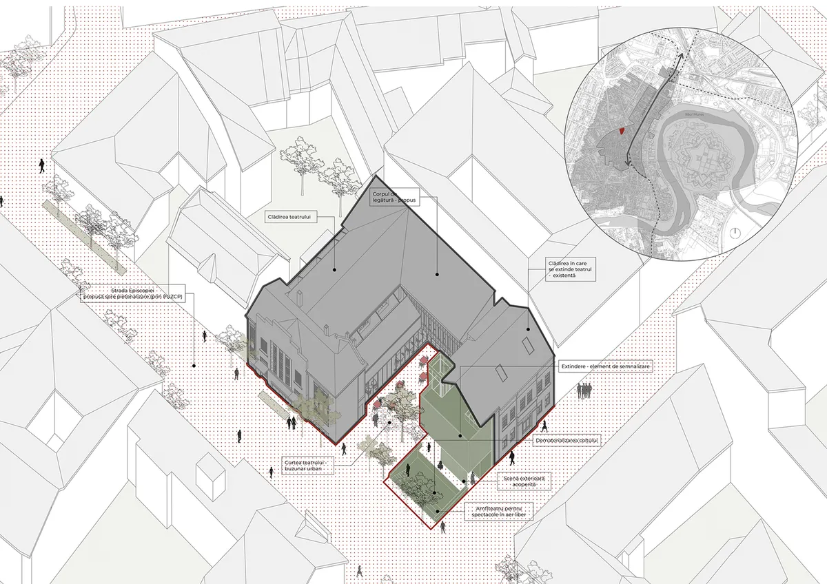 Situl este localizat în centrul istoric al orașului Arad, în Zona Construită Protejată și în „Cartierul Cultural” al acesteia. Se găsește în apropiere de Bd. Revouției, artera majoră de circulație a orașului și de teatrul principal (Teatrul Clasic „Ioan Slavici”). Din punct de vedere strategic, proiectul a urmărit transformarea teatrulului de marionete într-un centru cultural al teatrului de animație, pentru a include mai multe funcțiuni și pentru a susține toate activitățile și procesele tehnice ale teatrului. Astfel, teatrul ar deveni un loc de întâlnire pentru diferitele trupe de animație din țară și nu numai și o platformă de interacțiune între actori și public, atrăgând mai mulți utilizatori și deservind mai bine comunitatea din Arad. Pentru a realiza acest scop, construcțiile parazitare de pe parcelă, deteriorate și fără valoare arhitecturală sau istorică au fost demolate și o a doua clădire existentă pe sit a fost transformată în spațiu pentru teatru. Gestul a permis mărirea curții, ce devine un buzunar în prelungirea străzii, dedicat întâlnirii și spectacolului. Clădirea teatrului are o istorie bogată - a fost contruită în 1929 ca și Casă de Cultură a Industriașilor, iar în ultimul secol și-a modificat constant forma pentru a se adapta noilor cerințe și funcțiuni, astfel că și-a pierdut numeroase caracteristici. Propunerea a urmărit readucerea și reinterpretarea acestor trăsături, definitorii pentru atmosferă, și totodată adaptarea lor la funcțiunea actuală - teatru de marionete. Extinderea propusă pentru cea de a doua clădire de pe sit este o scenă în aer liber, dar constituie în același timp un element magnet în spațiul urban, definit de lumină, umbră și transluciditate, concepte strâns legate de lumea spectacolului și a animației. Obiectul marchează tipologia parcelei, fără a ocupa în mod fizic colțul.